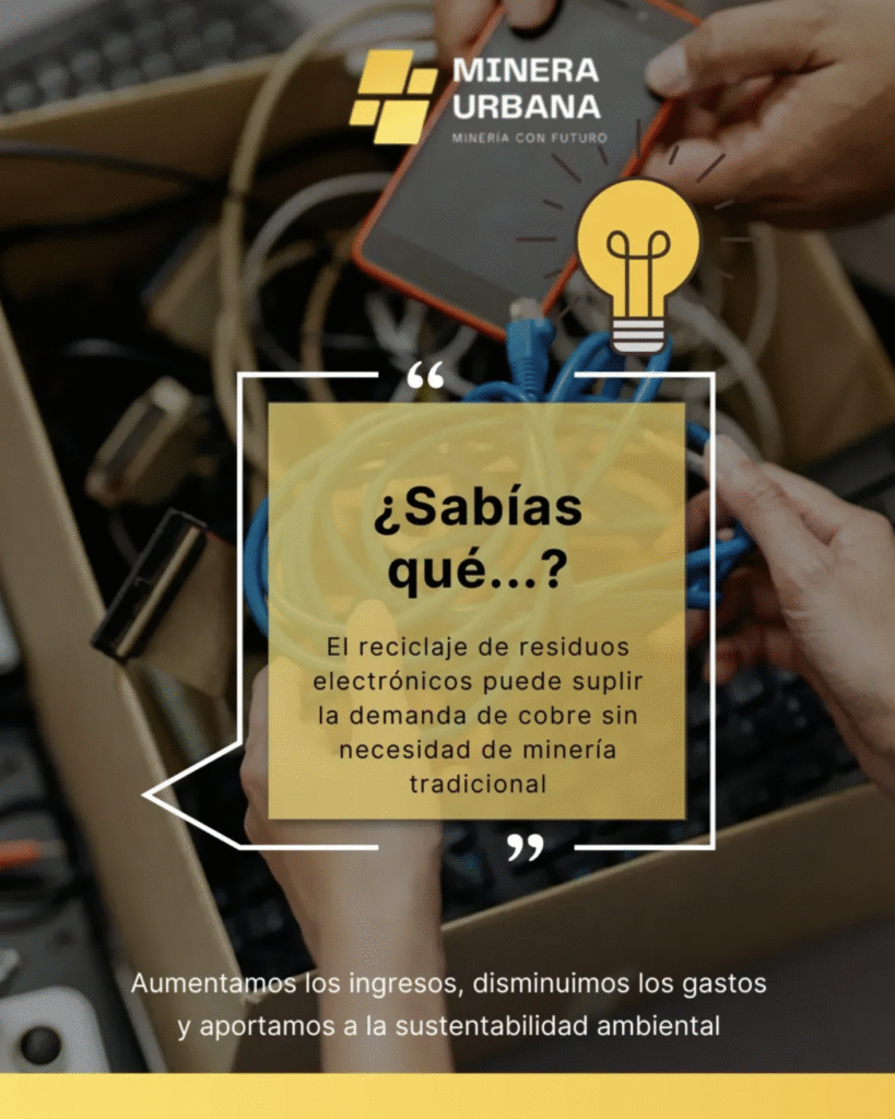 El reciclaje de residuos electrónicos puede suplir la demanda de cobre sin necesidad de minería tradicional. 🛠️🌿 Con Minera Urbana, educamos y actuamos para proteger los recursos que nos quedan.